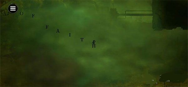 字母人HERO从山坡上滚下后路被堵住,需要向前冒险,HERO向前跑跳下通道,踩着木板向下到中间的平台,会遇见第一句箴言,在跳上去向右边跑,推着字母F和它的其他的字母伙伴相遇组成FAITH信仰。
