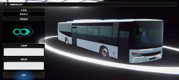 2、然后组建一个公司,选择公司名、公司标志、车辆颜色等,选择好之后点击继续;