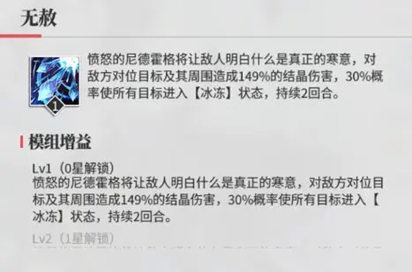 7天任务的100点积分奖励是SSR角色尼德霍格尼德霍格(0星)的必杀技能以30%的概率冻结最多四个敌人2回合,且由于自身被动,尼德霍格能够在回合一开始就自充能释放大招,得益于此,尼德霍格是目前在控制上最出色的角色,也是黑渊跨越大量战力和跨战力通过主线的重要角色。