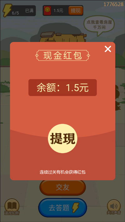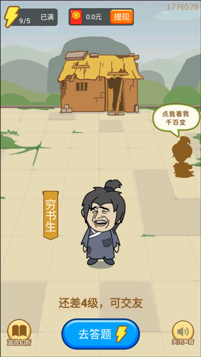 1、在本站下载安装运行秀才养成记,就会看到温故知新、去答题、声音、体力、红包等功能;