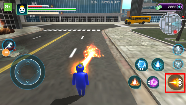 4、还可以点击最右下角的激光键,释放远程激光来打击敌人;