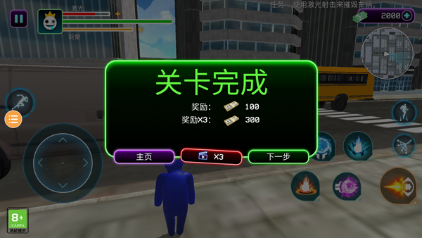 操作方面,玩家可以通过滑动屏幕控制角色移动,并使用技能按钮释放各种技能。还可以利用抓钩吸附在墙壁上躲避敌人或进行攻击。游戏整体玩法轻松解压,适合休闲娱乐。我个人觉得这款游戏挺有意思的,尤其是可以自由破坏城市和完成任务的设计,应该能带来不少乐趣。如果你喜欢冒险和挑战,不妨试试看!