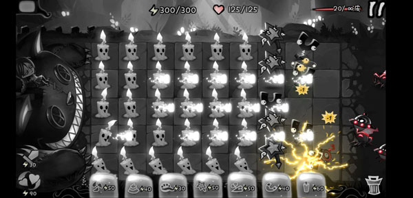 格蕾特的小屋是一款画风格调偏黑暗的策略塔防游戏,该游戏的玩法同植物大战僵尸相类似,在面对黑暗中火球的靠近时,玩家需要通过放置“玩具”来抵御怪物的侵袭,由于每种玩具上阵所需的能量不同,因此玩家需要合理安排玩具上阵才能成功抵御黑暗中的怪物。相比于植物大战僵尸,这款游戏不仅在画面上给人以新奇,在丰富的玩法上也比植物大战僵尸更有乐趣,玩家可依据不同玩具的属性在训练室里进行不同程度的属性内容训练,增加耐力,提升智力,从而提升玩玩具在战斗方面的整体战斗力。