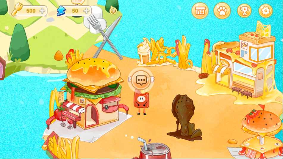 1、游戏画面细腻细腻,充满童趣和创意。每个小怪物的原型都与食物有关。