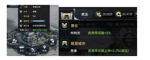 攻下城池会给联盟全体成员提供属性,其中就有带兵数加成的城池。联盟普通成员可以获得基本加成,盟主和本城池官员可以获得更高加成。攻下城池后获得势力值,会获得爵位,爵位也是提供带兵加成的。