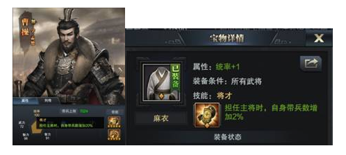 武将自带的(将才)技能可以提升带兵数,或者各类兵种加强的技能,可以通过升级来继续加强。也可以通过装备宝物来获得第二个技能,不过宝物带的技能无法继续升级的。部队内所有武将和宝物的技能效果是可以叠加的。