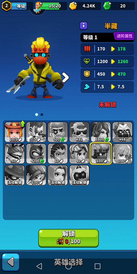 多达近二十个英雄角色,玩家进入英雄模式中便可逐步启用,让自己的技能飞升