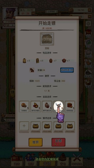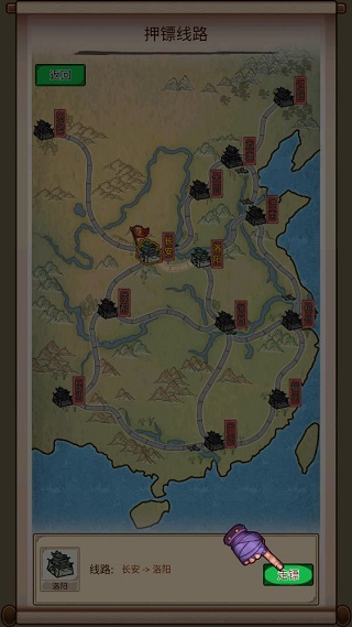 操作完成后,开始押镖,在途中你可能会遇到各种有趣的事。