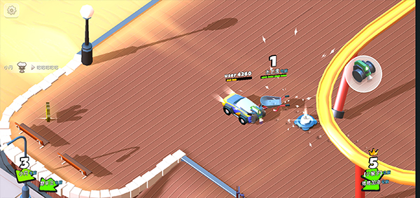 这款游戏类似于弓箭手大作战和怪兽大作战,都是在地图里面拾取道具来击杀敌人,玩起来就像个人大混战,而且游戏的的操作方法要比他们简单,但是掌控住车子攻击别人的车子就不是那么简单的事情了,毕竟是一款休闲游戏不能设置太难嘛。