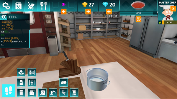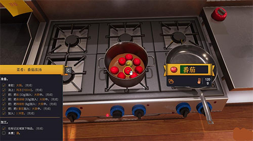 3、再来练习烹饪,所有的厨具一应俱全,边进行游戏,非常逼真的画面的。