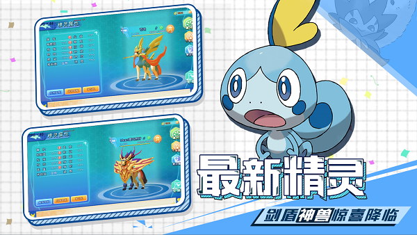 星沉月落风云会,宝剑神盾呼啸出,全新精灵惊喜降临,巅峰对决一争高下!剑之神兽苍响与盾之神兽藏玛然特,它们充满谜团,似乎没有人知道它们的存在。苍响拥有斩断一切事物的闪耀之剑,能够使出连对手也会为之著迷的华丽攻击!藏玛然特拥有反弹一切攻击的辉煌之盾,能够以威风凛凛的举止压倒对手。强悍无双的剑与盾,将是每一位训练家在竞技场上的重要伙伴!
