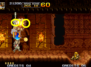 -除了下方轨道的炮弹要跳起来闪,其它蹲下就好(要跳的时候要记的把游戏杆放开,不然有时候会按到滑垒)