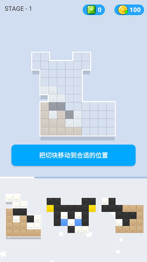 1、玩家只需通过拖拽和旋转的方式,将像素积木拼成指定形状即可完成任务。这种玩法简单直观,无需复杂的操作,使得玩家能够轻松上手并快速沉浸于游戏中。