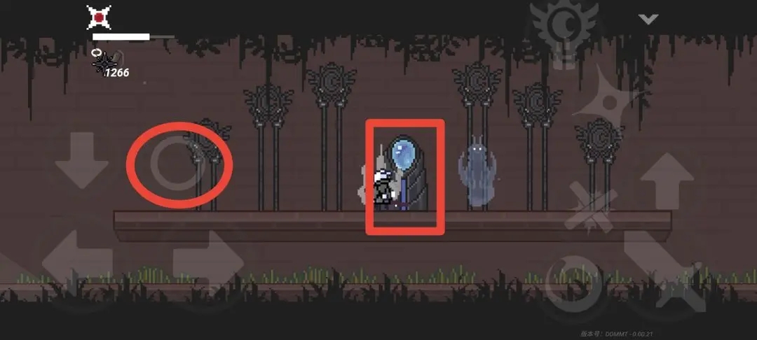 打怪会掉月魄(蓝色)→攒到一定数量→回圣地蓝柱子(矩形框)→点交互键(红圈)