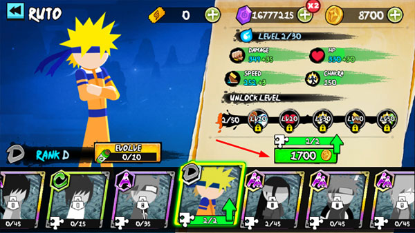 3、15个忍者任你选择!请收集、升级和进化它们。