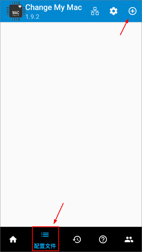 1、首先打开应用,点击下方配置文件,接着点击右上角+号;