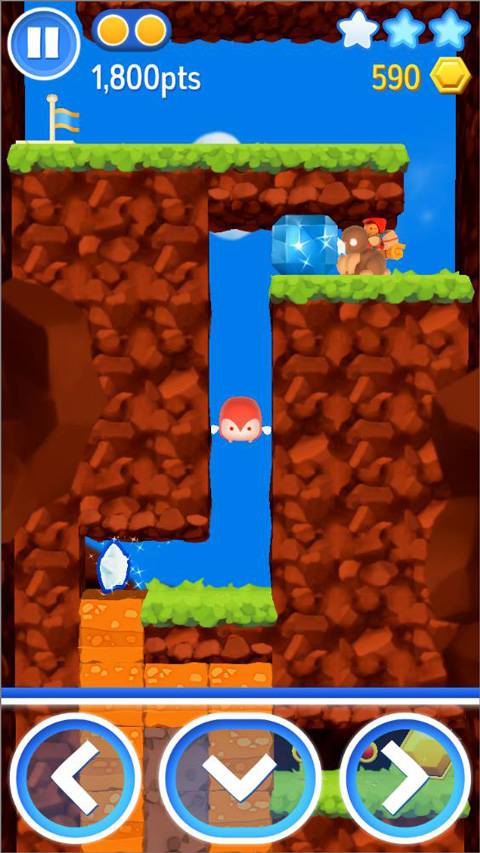 针对游戏操作和玩法,相信大家进入后即可一目了然,左、右两侧移动,下方挖掘,同时点击界面即可进行跳跃。