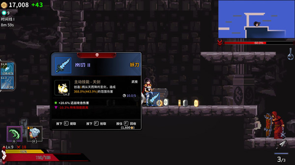 在战斗中,玩家可以拾取精华。通过当前地图或者死亡后,前往特定NPC处能够解锁永久性的增益效果。
