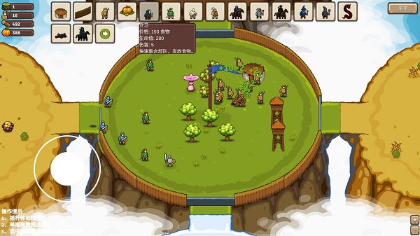5、进入游戏后,在底部的建筑栏中有不同类型的建筑可供玩家选择,其中还包括各种兵种,点击可了解所有信息包括生命值,招收的价格以及伤害。