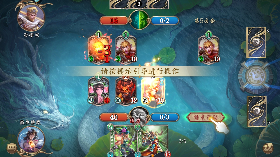 2、前期运营:优先保证场上有生灵站场,积累场面优势。若对手铺场快,可用低费解牌或具有解场能力的生灵应对,如 “飞剑”“霹雳火” 等。同时注意自身五行资源的积累和利用,为后续高费卡牌的打出做准备。