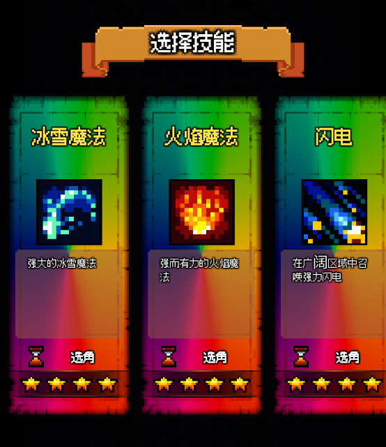 3、在战斗过程中会随机出现三个技能,玩家可以自由选择,要注意的是,有些技能需要释放完之后才能移动。
