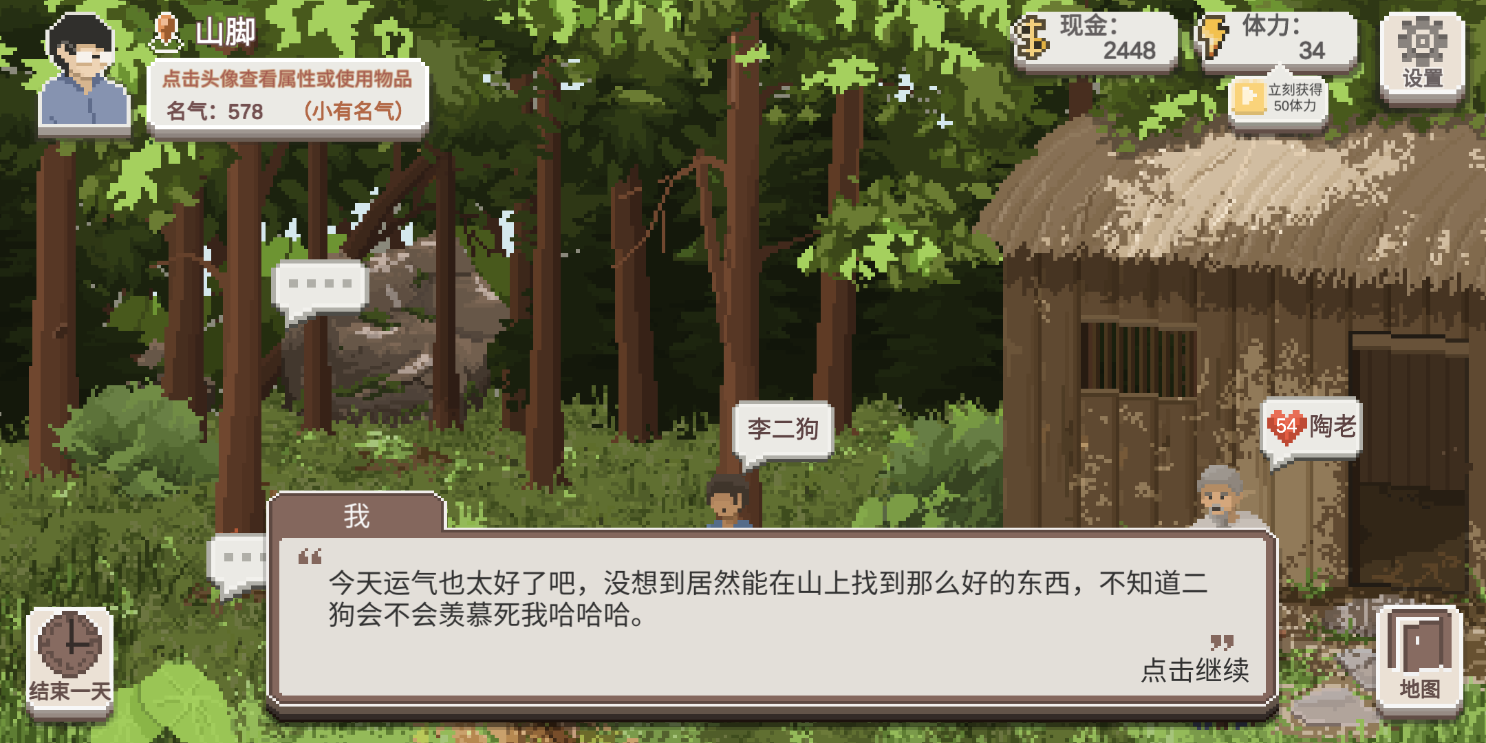 这个BUFF可以提高我们上山找到好东西的几率,很实用,其实这个玩法也没有什么好说的,因为实在是太简单了,每天上山找东西即可。