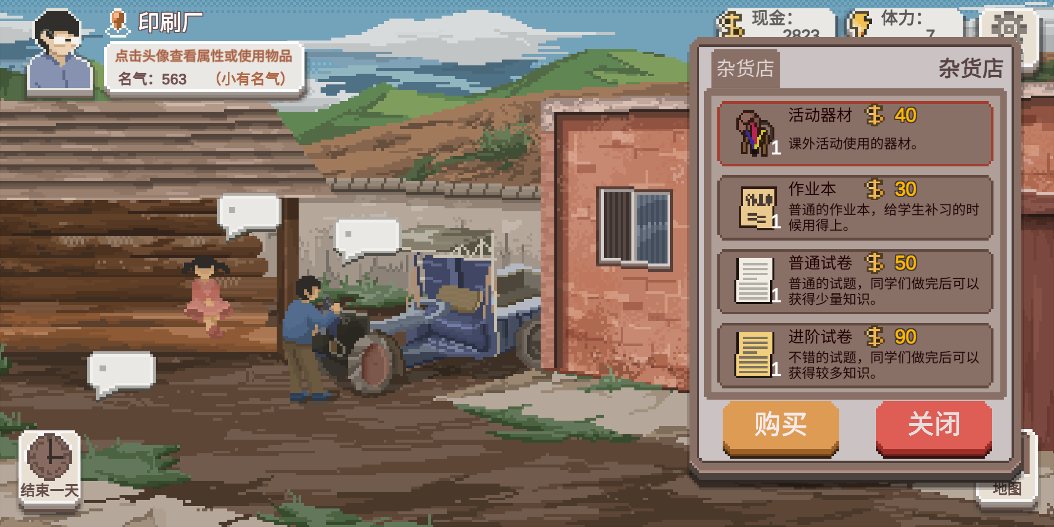 5、当然,也有很多NPC可以交互。NPC有好感度系统,提高好感度后,会出现新增的交互内容,或者支线任务。所有可以招入学的学生都是随机生成的。学生有性格和天赋,有些厌学的学生在课堂上更加容易捣乱。有些天赋高的学生能够额外获得知识。通过培养和学生的好感度,可以改善学生的一些毛病。