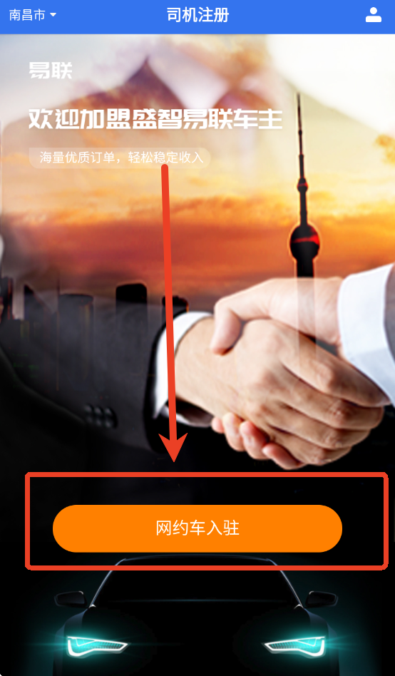 3、选择完成之后会自动跳回之前的页面,点击网约车入驻。