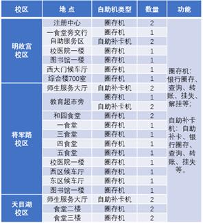 校园卡业务可通过人工窗口、自动服务终端、互联网终端等3种方式办理。人工服务,主要包括制卡、发行、挂失、解挂、销户、换卡等,三校区服务地点分别位于明故宫校区工作注册中心、将军路校区师生服务大厅、天目湖校区师生服务大厅。
