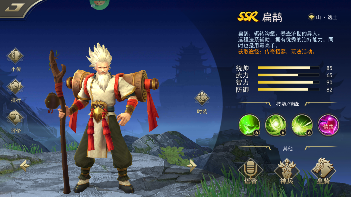 扁鹊,辗转沟壑、悬壶济世的异人。远程法系辅助,拥有优秀的治疗能力,同时也是用毒高手。