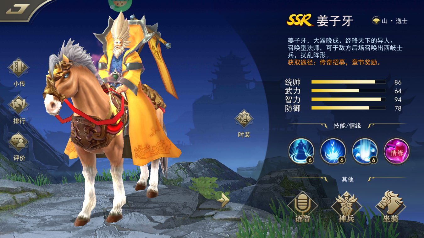 姜子牙,大器晚成、经略天下的异人。召唤型法师,可于敌方后场召唤出西岐士兵,扰乱阵形。