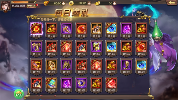2、签到奖励:每日签到领好礼,累计签到能获得海量材料,可能包含武将招募道具等。