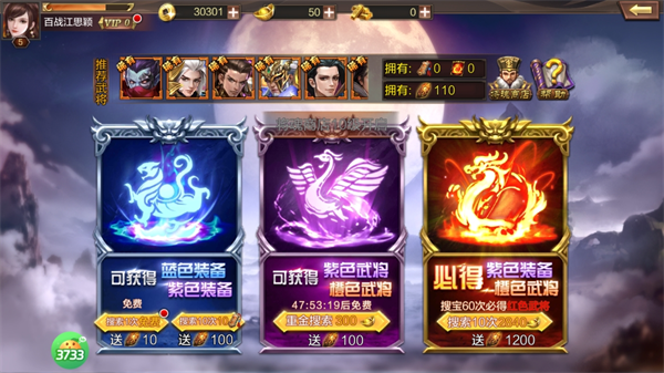1、活动福利:游戏会不定期推出限时活动,如节日活动、开服活动等,完成活动任务可获得武将碎片、招募令等道具,用于收集武将。