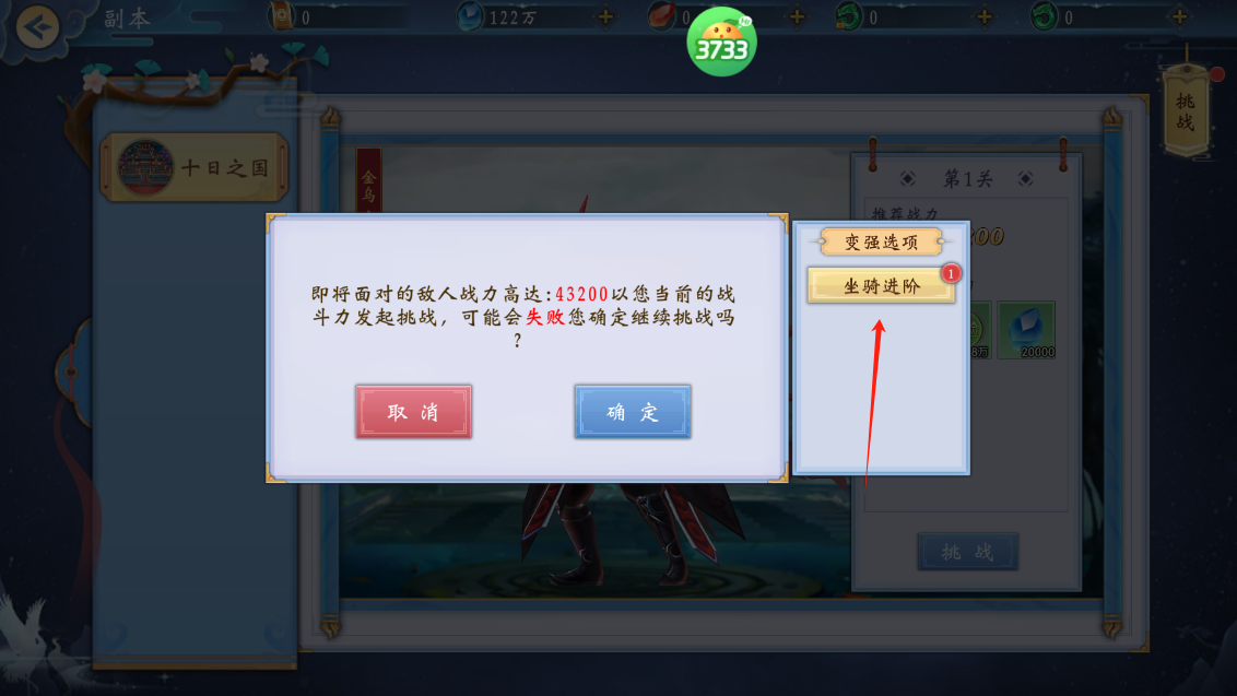 2、玩家需要提高自己的战斗,包括进阶坐骑、提升装备属性