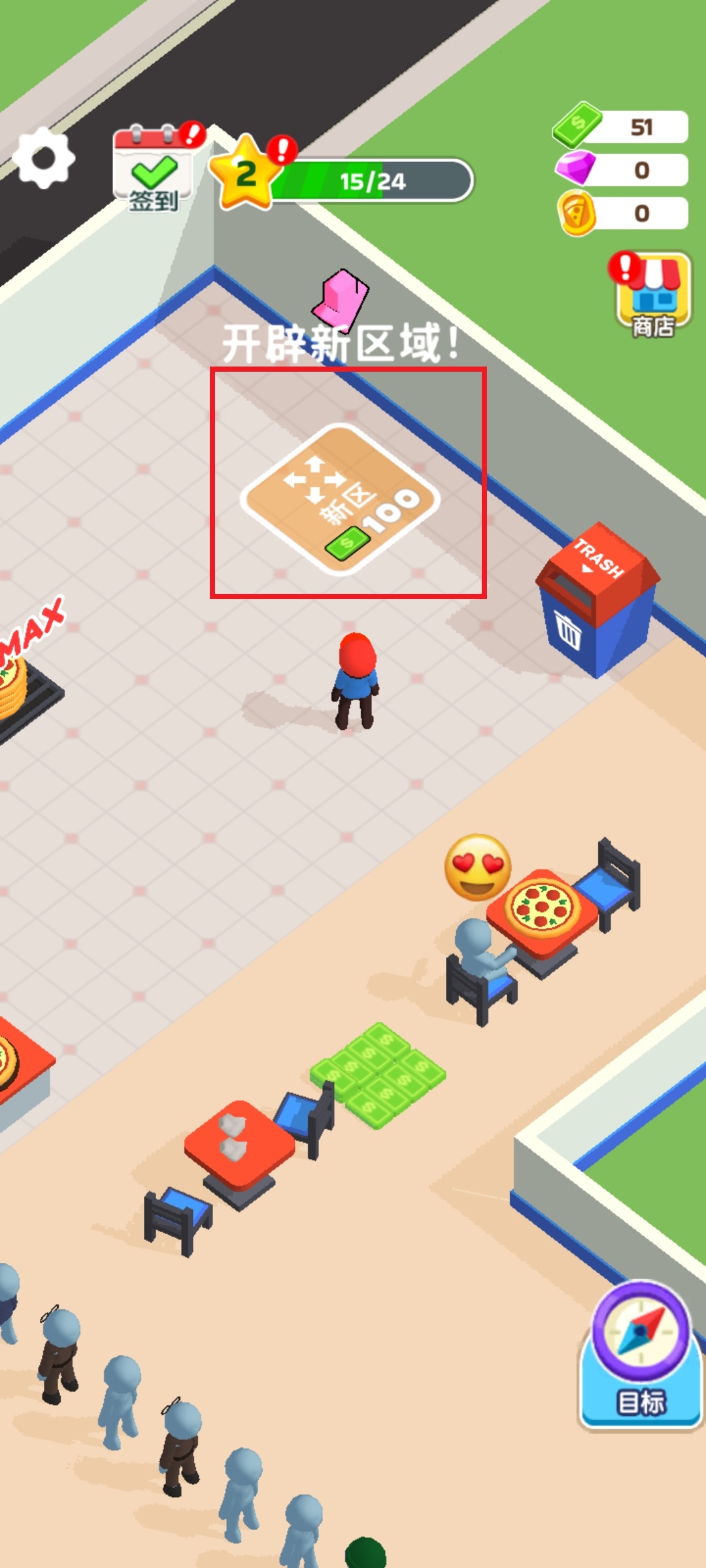 9、当等级达到2级时可以开辟一个新的区域并获得钞票。