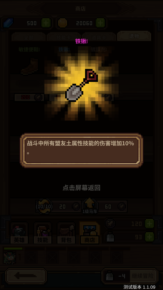(2)铁锹:战斗中所有盟友土属性技能的伤害增加10%