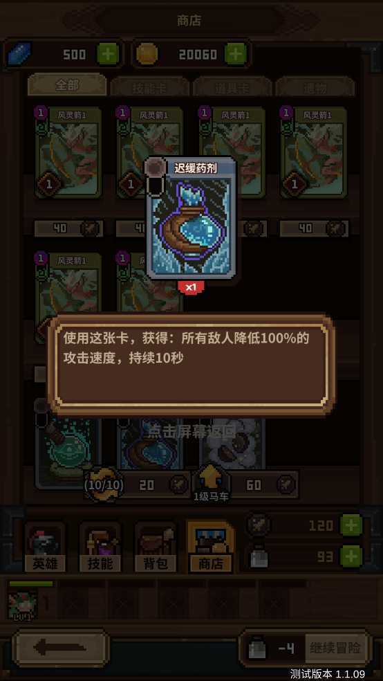 (2)迟缓药剂:使用这张卡,获得:所有敌人降低100%的攻击速度,持续10秒