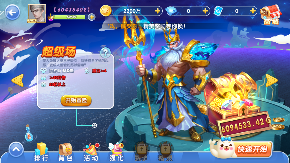 鱼丸斗地主是一款好玩的休闲捕鱼手游,玩家将进入一个梦幻的海底世界开始一场畅快的捕鱼之旅。游戏内有各种各样的鱼儿可以捕获,它们拥有不同的奖励分数,分数越高的鱼儿越难捕获,玩家需要平衡好消耗与收益。鱼丸斗地主官方正版游戏内还有大量的副本可以挑战,包括经典副本、无双副本以及深海副本等,各种超级boss等你来捕杀。游戏内还有超多炮台可以获取,想要捕获超级大鱼,一定不能少了好用的炮台。新老玩家上线还有大量免费福利相送,喜欢捕鱼游戏的朋友快来下载体验吧!
