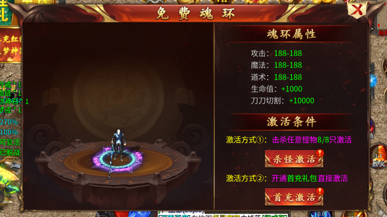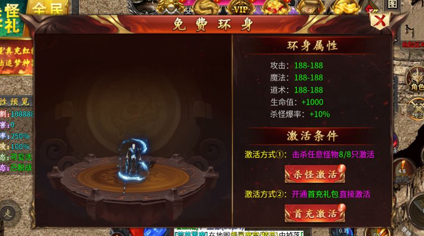 5、击败一些怪物之后记得点击上方的免费环身激活环身,可以提升属性。