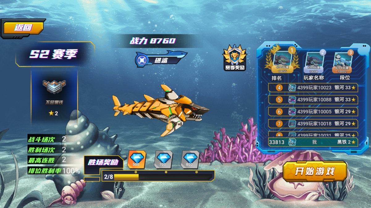 1、打开游戏后,有两个模式一个海底深渊和排位赛,点击开始游戏。