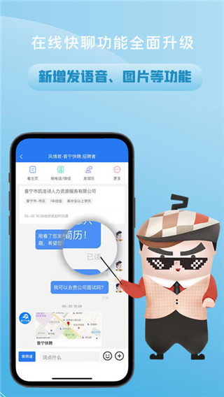 1、告别传统求职方式,直接和企业的负责人进行聊天对话,成功率更加高。
