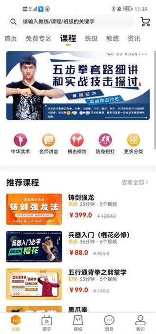功夫者app官方版是一款线上功夫教学的软件,这款软件可以帮助我们学习各种功夫,足不出户就可以学习武术、太极、软兵器、擒拿术、轻功等等,更有海外的功夫教学,拳击,泰拳等等,只要你想学的这里都有。并且该软件还可以根据你的自身条件来给你制定一个完美的学习计划,测量你身体的BMI并且可以根据你来安排私教和课程,非常的人性化为您提供一条龙服务。另外,功夫者软件中的教练都是国家认证专业授权的,都是非常专业的功夫教练,他们不仅会练更重要的是会教你怎么练,一个好的教练可以让你学习的路上少走很多弯路。并且,大家自己做的训练视频也是可以分享到功夫者软件上的哦,记录自己的成长,并且可以和其他功夫爱好者一起交流心得,整体来说是一款非常不错的锻炼软件,感兴趣的话就快来下载,开始燃烧你的卡路里吧。
