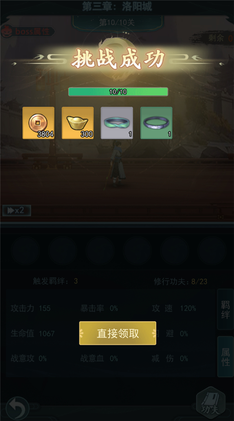2、每日在线领海量元宝,通关章节再领钱币,功夫侠客抽不停。