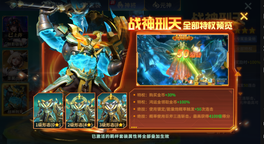 战神刑天是趣玩捕鱼出场的第二位神将。