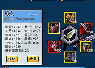 神器每次升级给英雄加属性的,加成多少看神器介绍文字说明。
