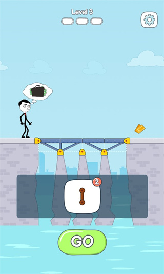 2、进入第一关,滑动木板到正确位置让火柴人通过桥梁;