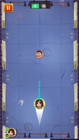 4、拖动角色瞄准敌人,角色在撞到墙壁、建筑是会改变路线,可以根据这个特性,一次攻击尽量打到更多的敌人。