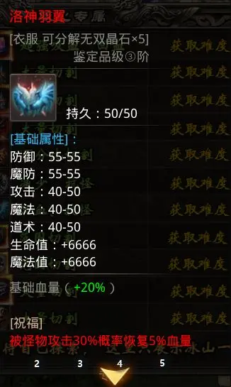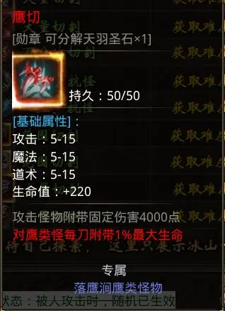 5、二大陆奇遇BOSS蛤蟆掉落5级嗜血勋章,异犬掉落5级破魔宝石,三大陆奇遇BOSS巨钳掉落堕神戒指。触发就直接元宝召唤,注意佩戴剧情赠送的防麻痹跟冰冻项链能更加快速杀怪。
