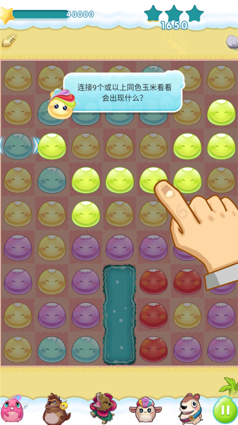 9、现在我们就需要连接相应颜色的玉米进行消除;