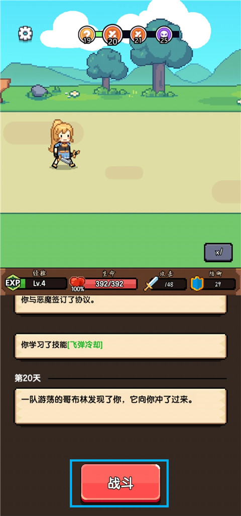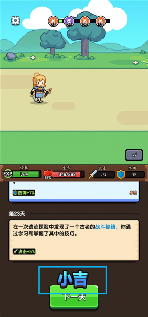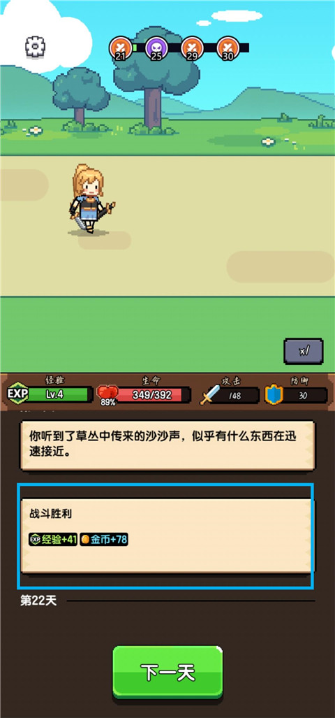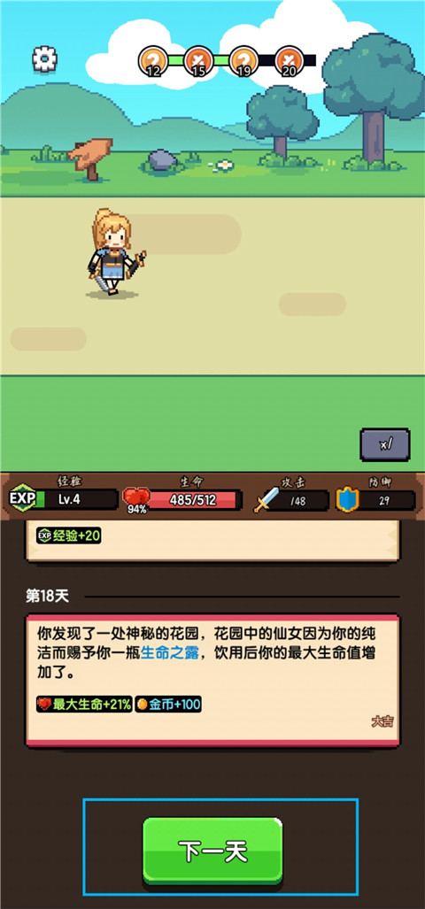 1、点击下一天开始新一天的冒险旅程。